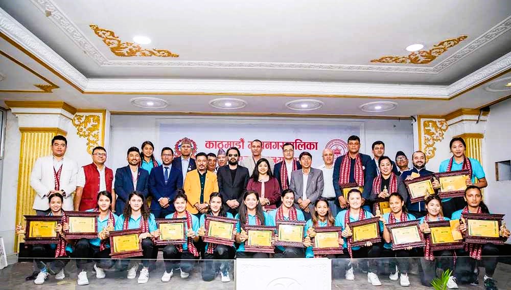 (काभा)महिला भलिवल खेलाडीलाई काठमाडौँ महानगरको जनही एक लाख नगदसहित सम्मान