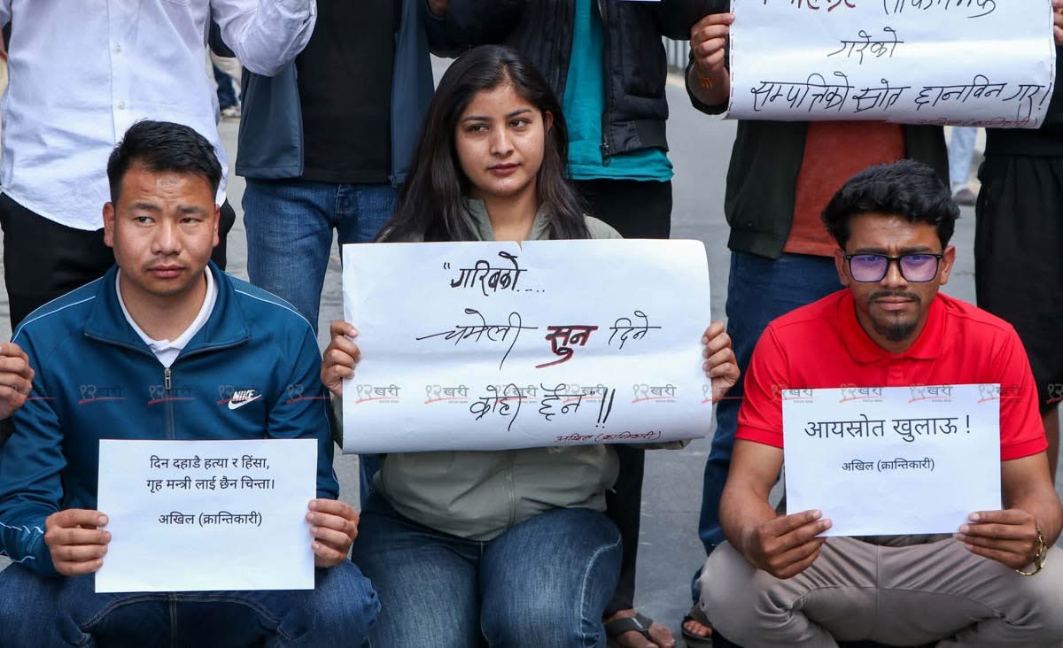 मन्त्रीको सम्पत्तिको स्रोत खुलाउन माग गर्दै माइतीघरमा विद्यार्थीको प्रदर्शन