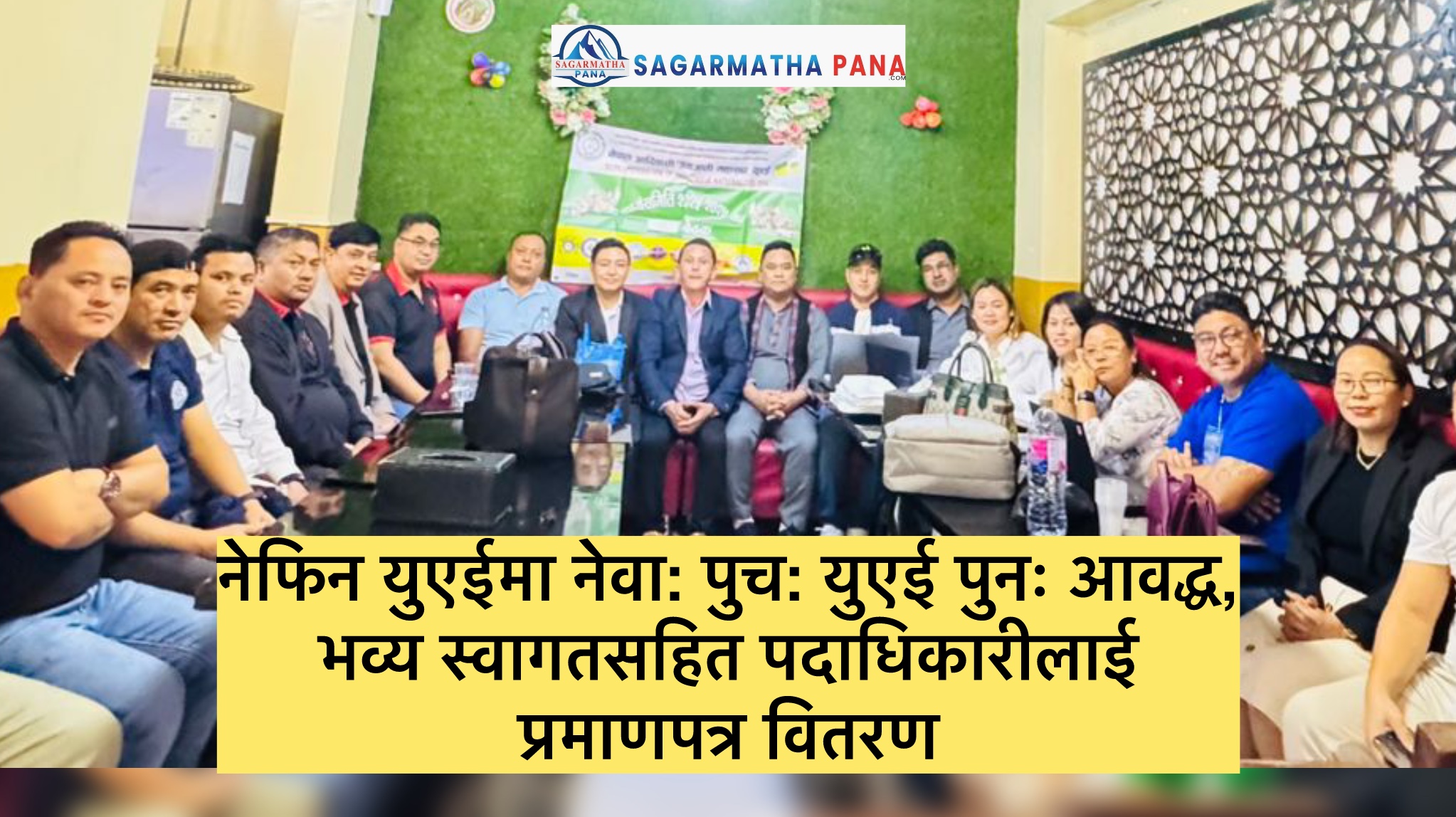 नेफिन युएईमा नेवा: पुच: युएई पुनः आवद्ध, भव्य स्वागतसहित पदाधिकारीलाई प्रमाणपत्र वितरण