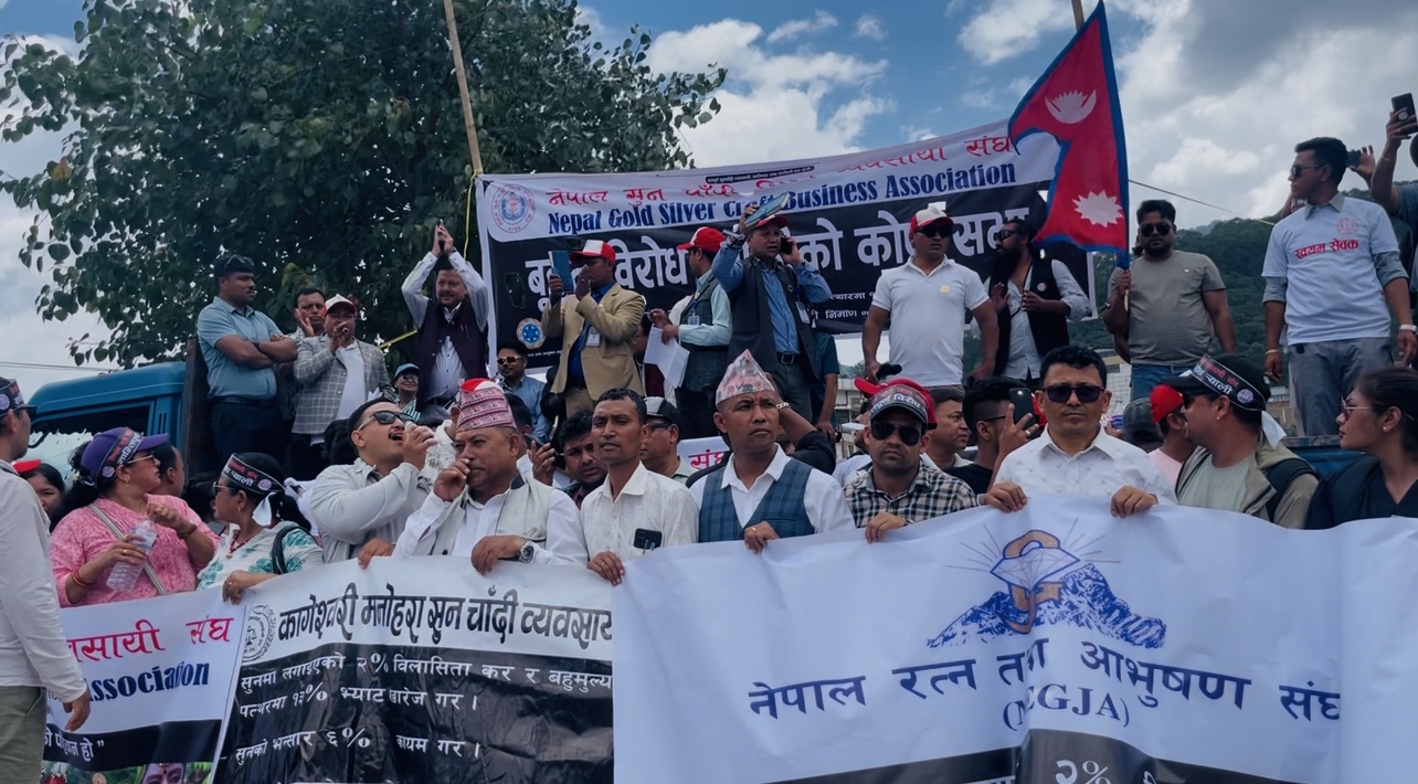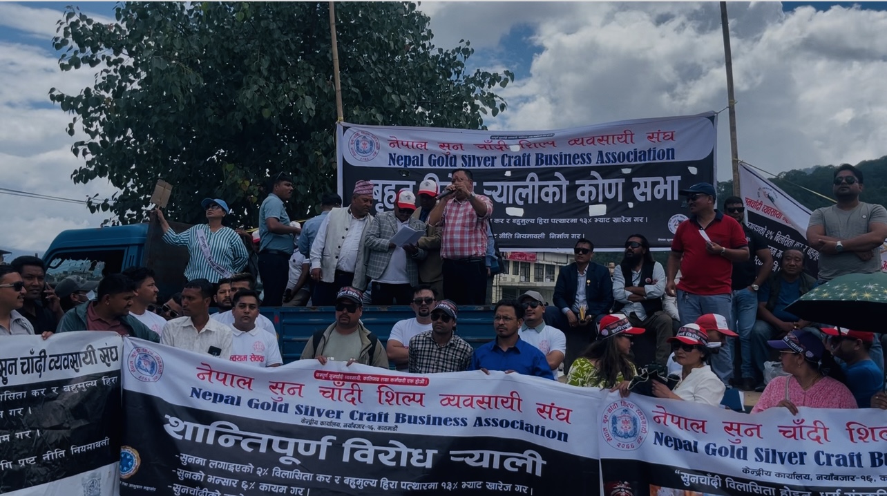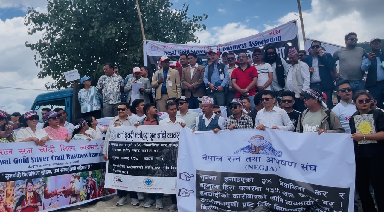 सुनचाँदी गहनामा लगाइएको विलासिता कर फिर्ता लिन माग गर्दै काठमाडौंमा व्यवसायीहरुको प्रदर्शन – Sagarmathapana:: Online News Portal