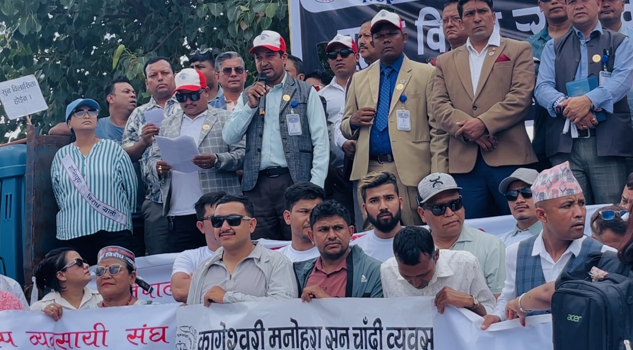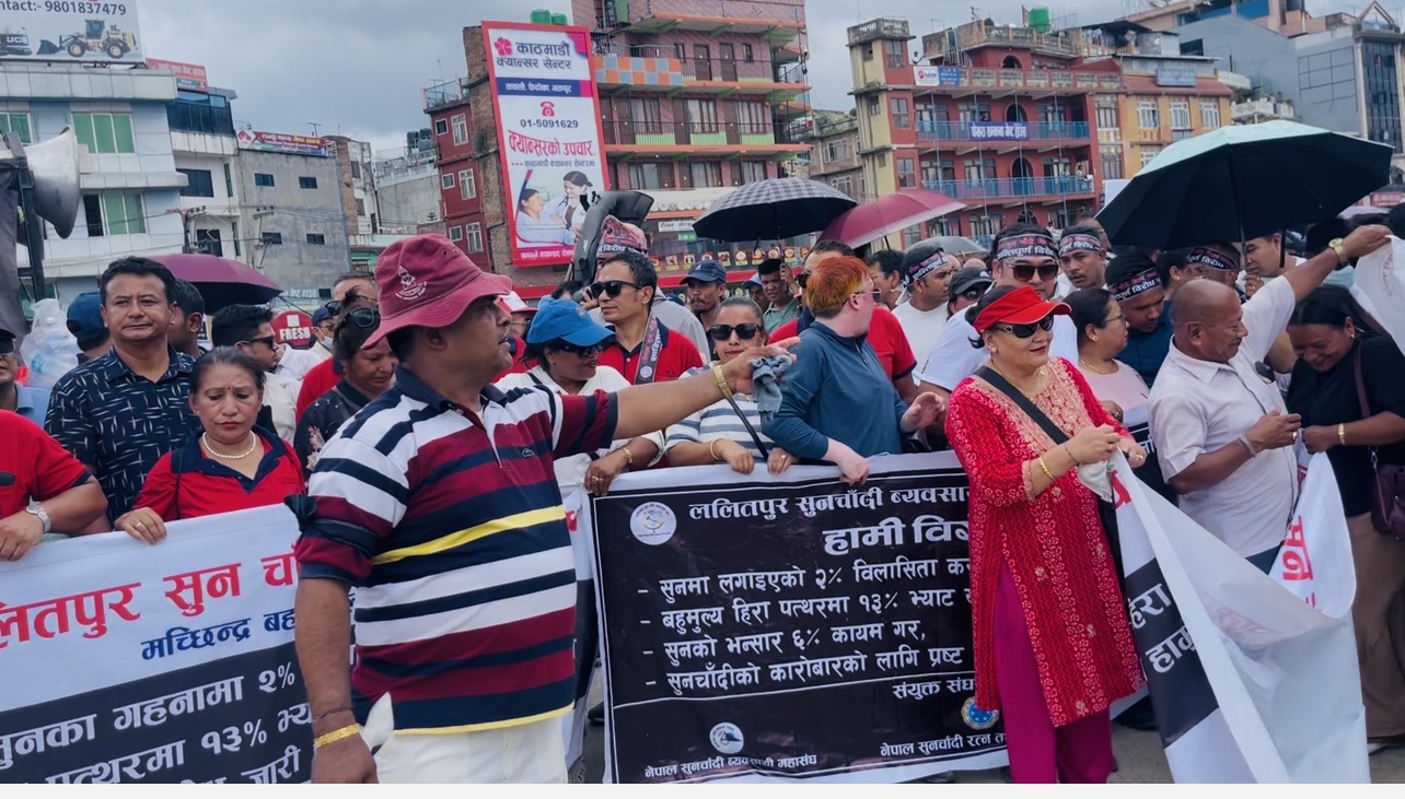 सुनचाँदी गहनामा लगाइएको विलासिता कर फिर्ता लिन माग गर्दै काठमाडौंमा व्यवसायीहरुको प्रदर्शन