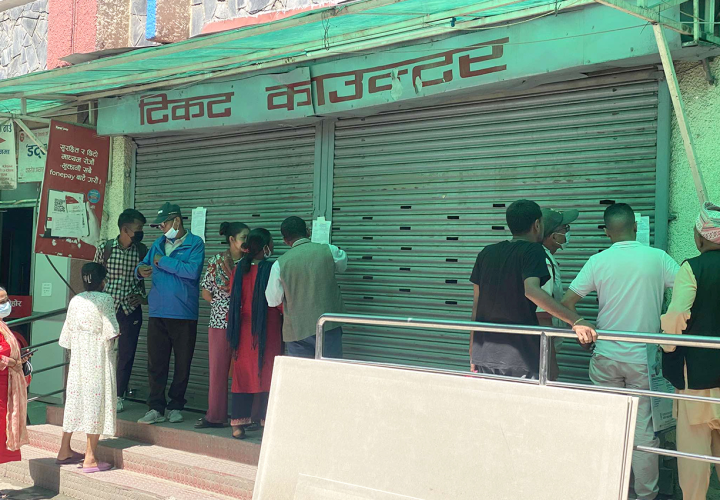 नेपाल चिकित्सक संघले ओपीडी टिकट काउन्टर बन्द गरेको भनेर टाँसेको सूचना पढेर फर्किन बाध्य छन् ।