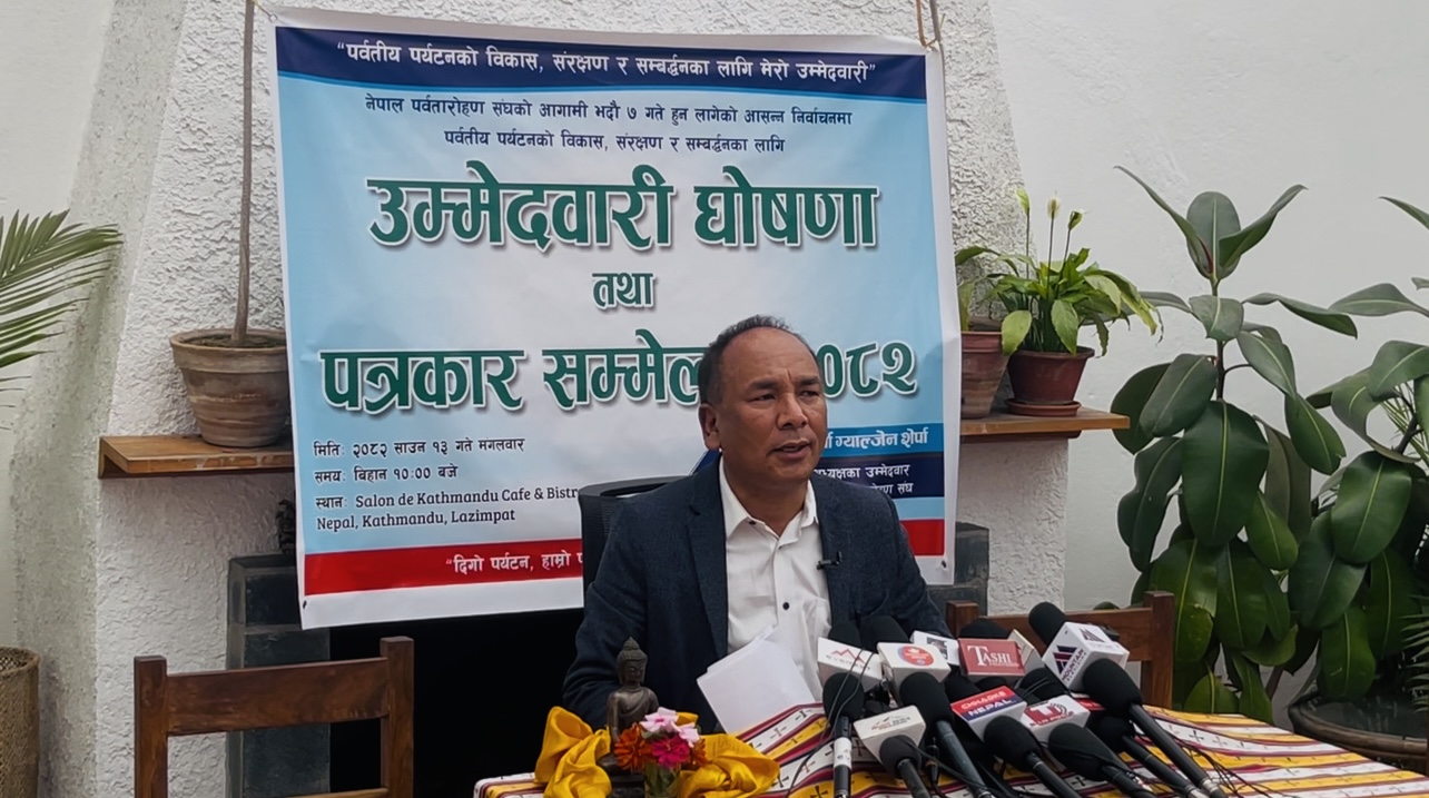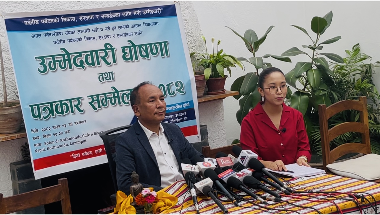 शेर्पाले संघको आगामी निर्वाचन भदौ ७ गते राष्ट्रिय प्रज्ञा प्रतिष्ठान, कमलादीमा हुने जानकारी गराउँदै, आफ्नो उम्मेदवारी योजनाबद्ध र दीर्घकालीन सोचमा आधारित भएको बताए।