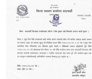 जिल्ला प्रशासन कार्यालयले आइतबार राति जारी गरेको सूचनामा भनिएको छ,