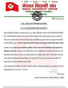 साथै विद्यार्थी संगठनका नाममा उपलब्ध हुने टिकट वा सुविधा खर्च कटौती गरी त्यसलाई विद्यार्थी हितमा उपयोग गर्न वा NPL व्यवस्थापनका लागि क्यानलाई उपलब्ध गराउन विशेष आग्रह गरिएको छ।