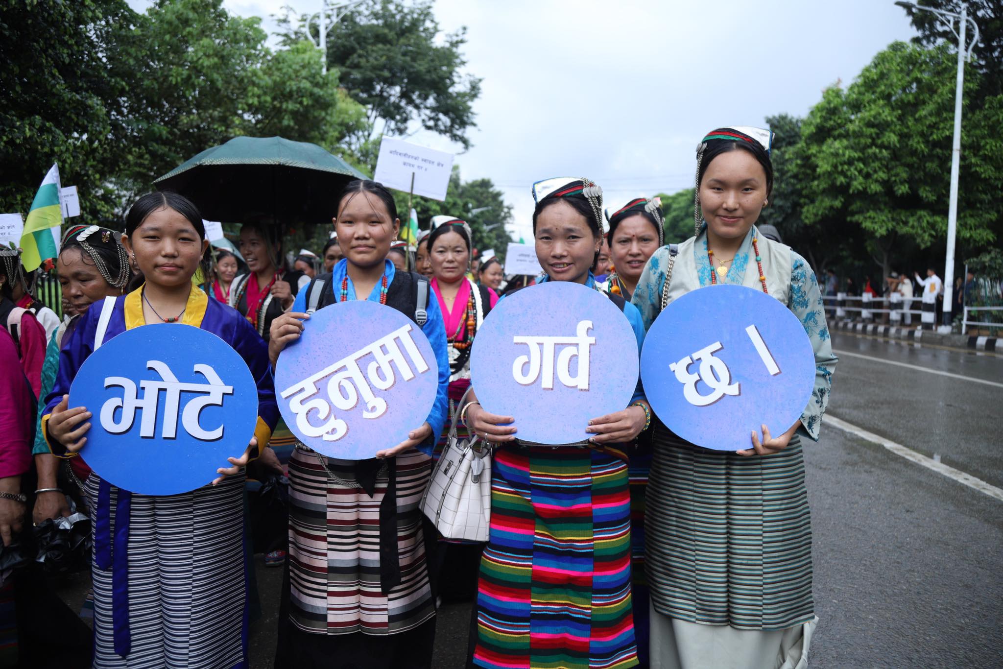 मगर, थारु, नेवार, तामाङ, राई र लिम्बूलगायत जातीय संस्थाहरुले आफ्नो ब्यानर र्‍याली निकालेका छन् भने र्यालीमा सहभागीहरु परम्परात पोशाकमा सजिएका छन् ।