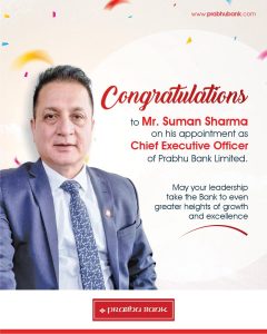 प्रभु बैंक लिमिटेडको नयाँ प्रमुख कार्यकारी अधिकृत (सीईओ)मा सुमन शर्मा नियुक्त