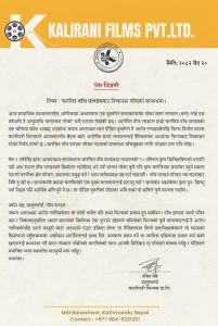 निर्माण पक्षले लम्साल संलग्न सबै दृश्यहरू चलचित्रमा समावेश नगरिने स्पष्ट पार्दै ती दृश्यहरू पुनः खिचिने जनाएको छ। साथै, फिल्मको कामलाई निरन्तरता दिँदै निर्धारित समयमै सम्पन्न गर्ने तयारी भइरहेको पनि जनाएको छ।