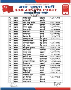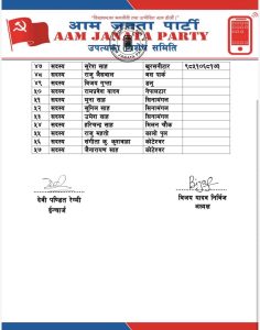कमिटीको उपाध्यक्षमा दिपेन्द्र चौधरी, रामप्रबेश पटेल, सचीवमा रामनारायण साह, सहसचिवमा भागिरथ साह, उमेश साह र कोषाध्यक्षमा ललन बैठा रहेको आजपा काठमाडौं उपत्यका कमिटीका इन्चार्ज देवी पण्डित रेग्मी, अध्यक्ष बिजय यादव निर्बिजले आज जारी गरेको बिज्ञप्ती उल्लेख गरिएको छ ।