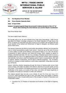 काठमाडौं । सार्वजनिक सेवा क्षेत्रमा सक्रिय ट्रेड युनियनहरू खारेज तथा विघटन गर्ने नेपाल सरकारको निर्णयप्रति अन्तर्राष्ट्रिय स्तरबाट कडा आपत्ति आएको छ।