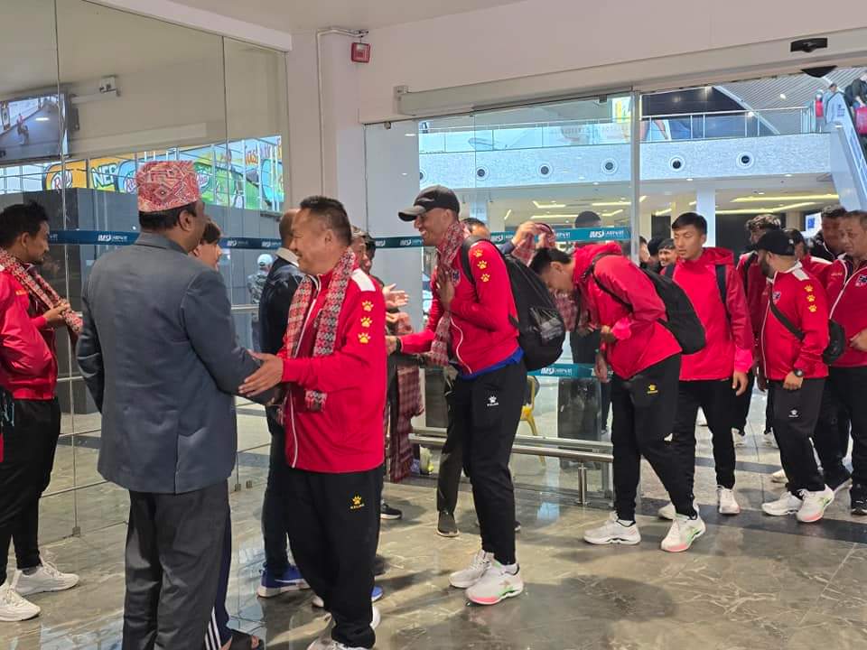 अखिल नेपाल फुटबल संघ (एन्फा) का अध्यक्ष पंकज विक्रम नेम्वाङसहित एन्फा पदाधिकारी र कर्मचारीले टोलीलाई त्रिभुवन अन्तर्राष्ट्रिय विमानस्थलमा स्वागत गरेका थिए।