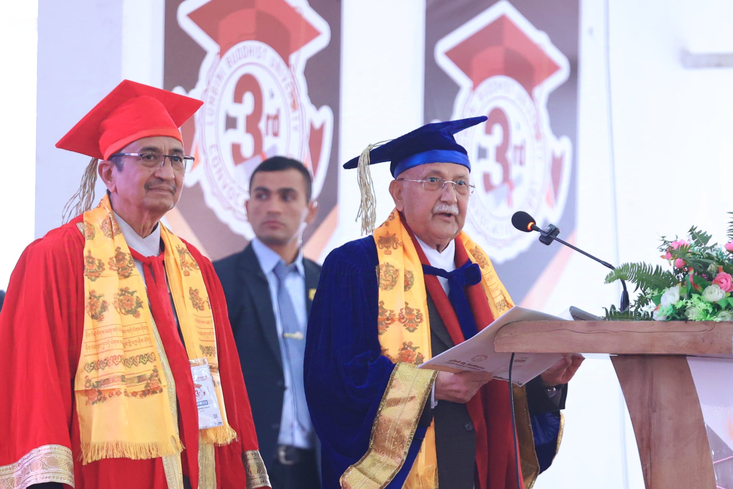 लुम्बिनी /लुम्बिनी बौद्ध विश्वविद्यालयको तेस्रो विशेष दीक्षान्त तथा २० औँ वार्षिकोत्सव समारोहलाई सम्बोधन गर्दै कुलपति एवं प्रधानमन्त्री ओलीले सबै सुखी होउन् भन्ने बुद्धका सन्देशको अर्का रुप नै आफूहरुले अघि सारेको ‘समृद्ध नेपाल, सुखी नेपाली’ को राष्ट्रिय आकाङ्क्षा भएकाले यसलाई पूरा गर्न सबैमा आग्रह गरेका छन् । प्रधानमन्त्री ओलीले बुद्धका दर्शन र शिक्षाको प्रचारक र अनुयायी भएर समाजमा प्रस्तुत हुन आग्रह गरेका छन् ।