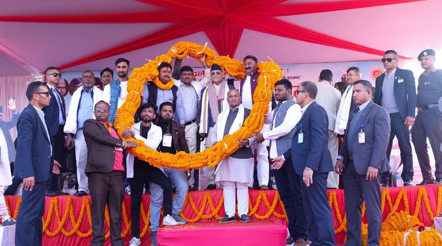 प्रधानमन्त्री ओलीलाई पर्सामा एक सय किलो र ८० किलोको मालाले अभिनन्दन
