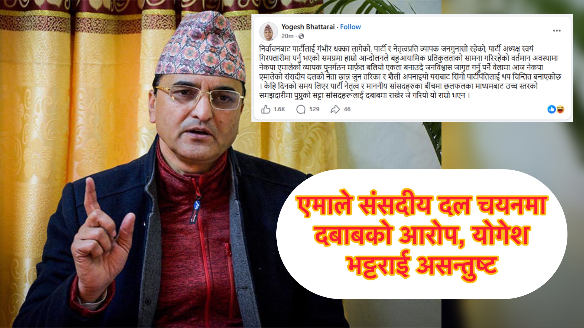 एमाले संसदीय दल चयनमा दबाबको आरोप, योगेश भट्टराई असन्तुष्ट