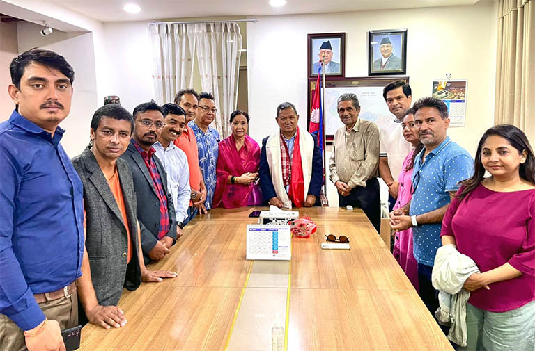 सञ्चार मन्त्री पृथ्वीसुब्बा गुरुङ सँग चलचित्र पत्रकार र कलाकारहरुको भेट नयाँ ऐन छिट्टै ल्याउन माग